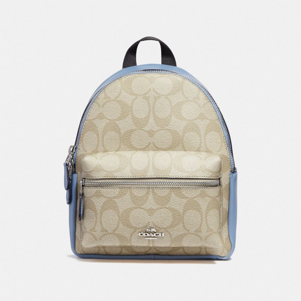 Coach F58315 Mini Charlie Backpack Light Khaki Pool Silver Coach Handbags