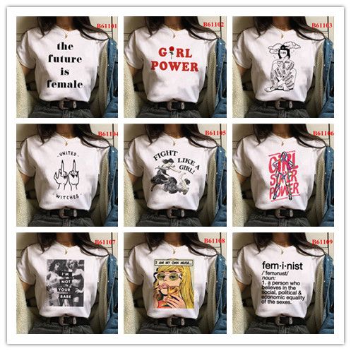 Womens T Shirt Girl Power Casual Short Sleeve Loose White T Shirt Painting Designs Size Xs 3xl T Shirt S Tees Shirts From Huangxiahua 14 07 Dhgate Com